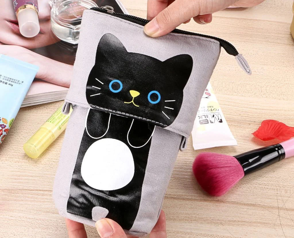 Cute Cat Print: The fabric is a heavy duty canvas and the cat is screened on cleanly, this adorable pencil case is perfect for girls and boys.