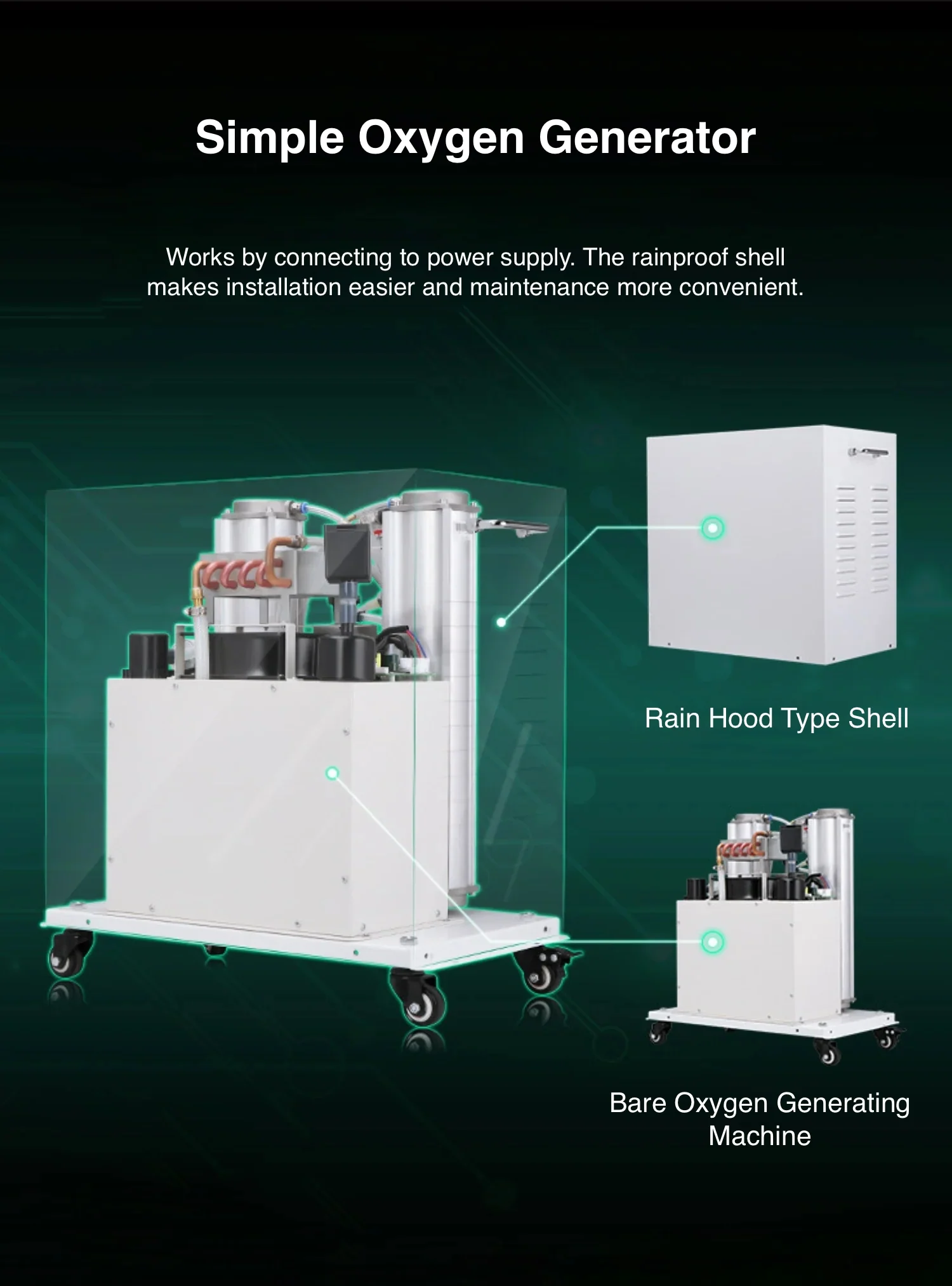 The use of the system is easy and convenient. Low-cost on-site oxygen production with raw material from nature’s pollution-free air.