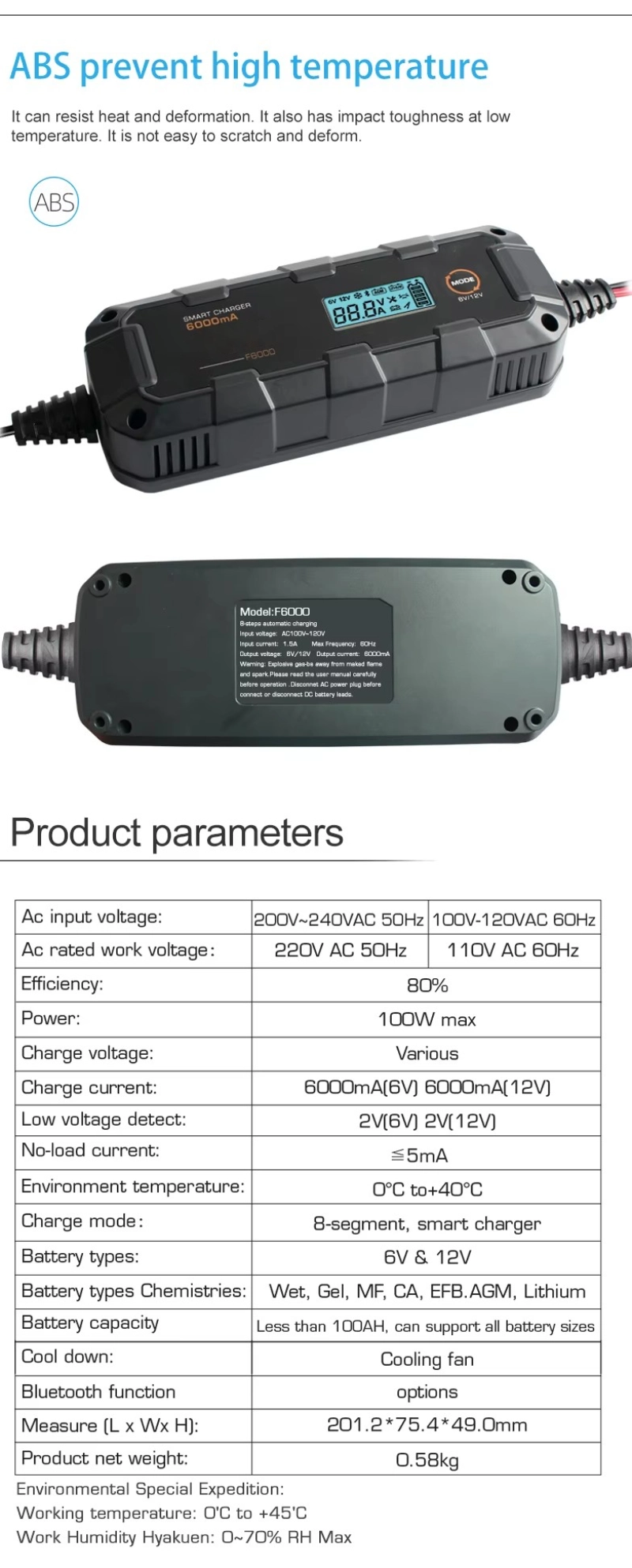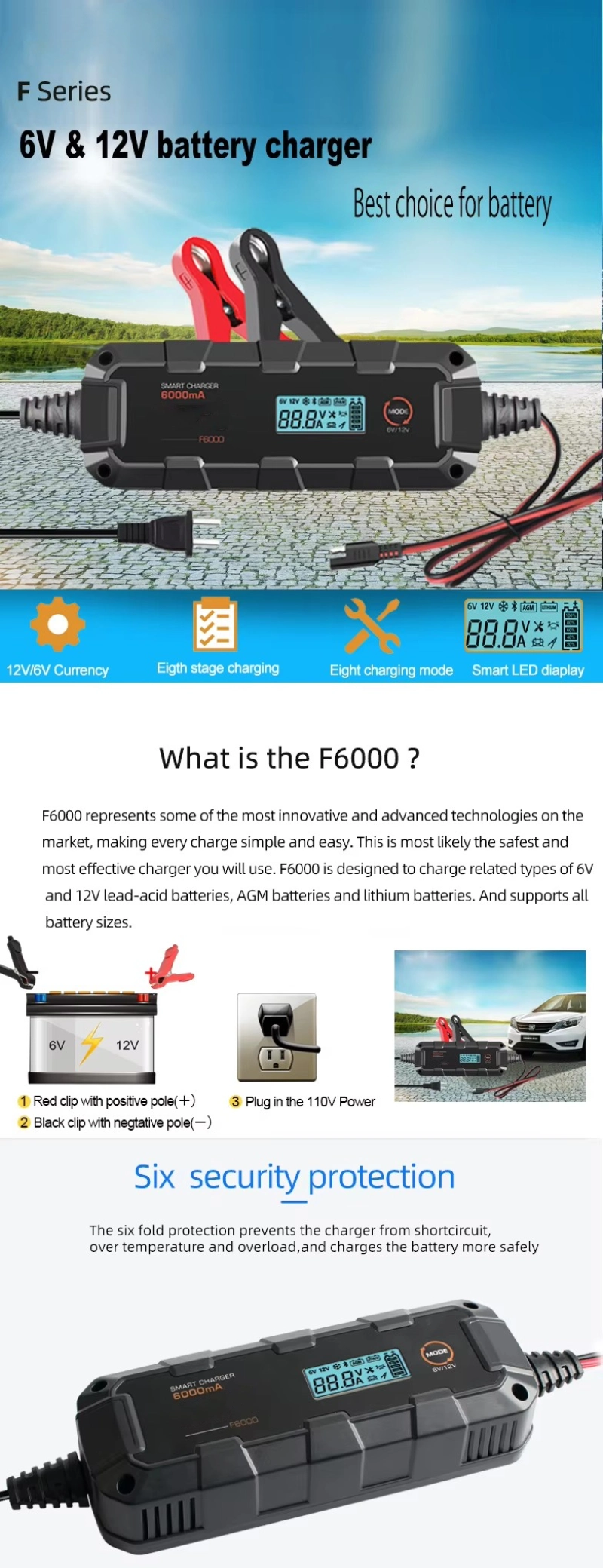 Universal Smart Charger | 6A for 6V/12V Automotive Lithium & Lead-Acid Batteries